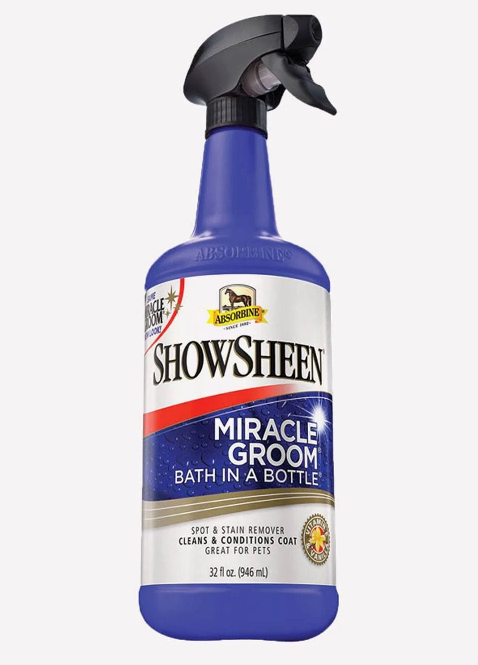 Absorbine Miracle Groom Spray is a 5-in-1 formula that cleans,ย conditions, deodorises, detangles, and shines in just one application.