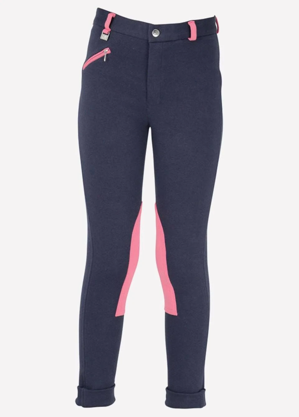 They feature contrasting knee patches and belt loops and the Hy Equestrian logo on the back pocket.