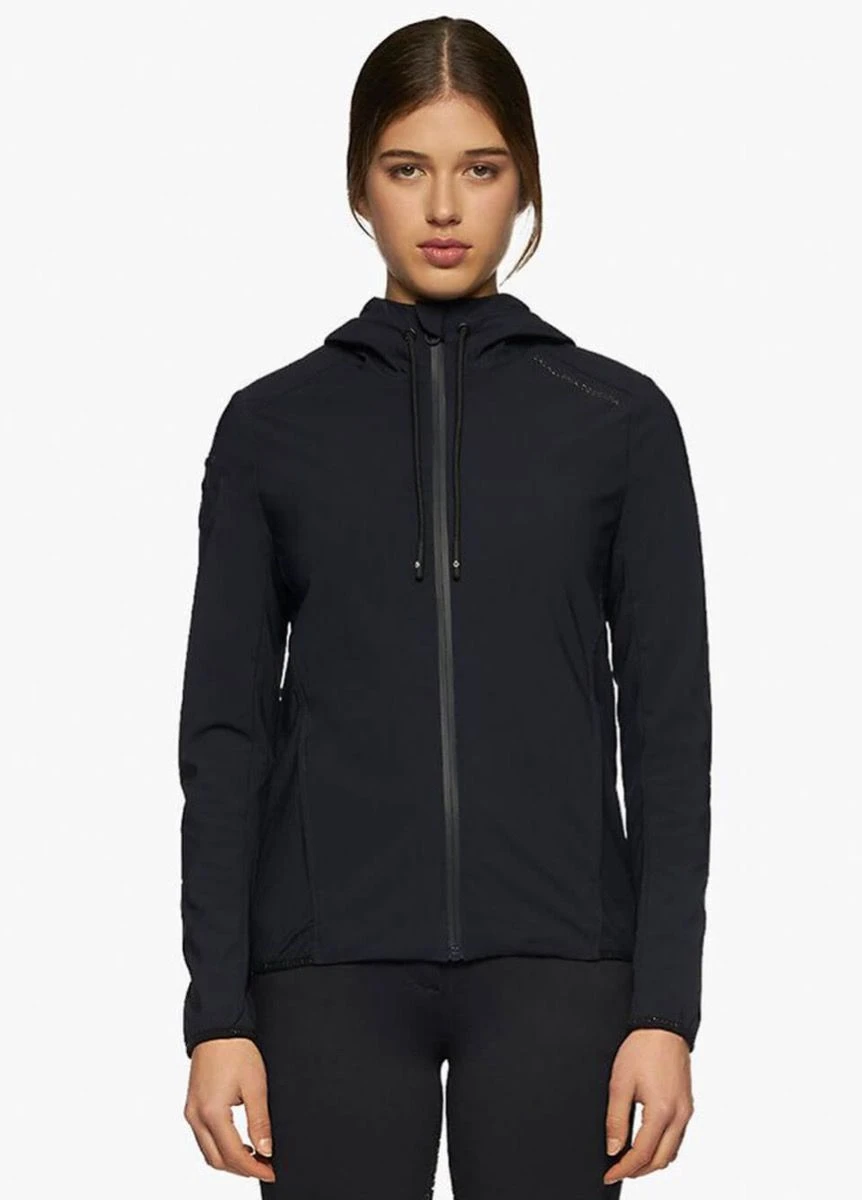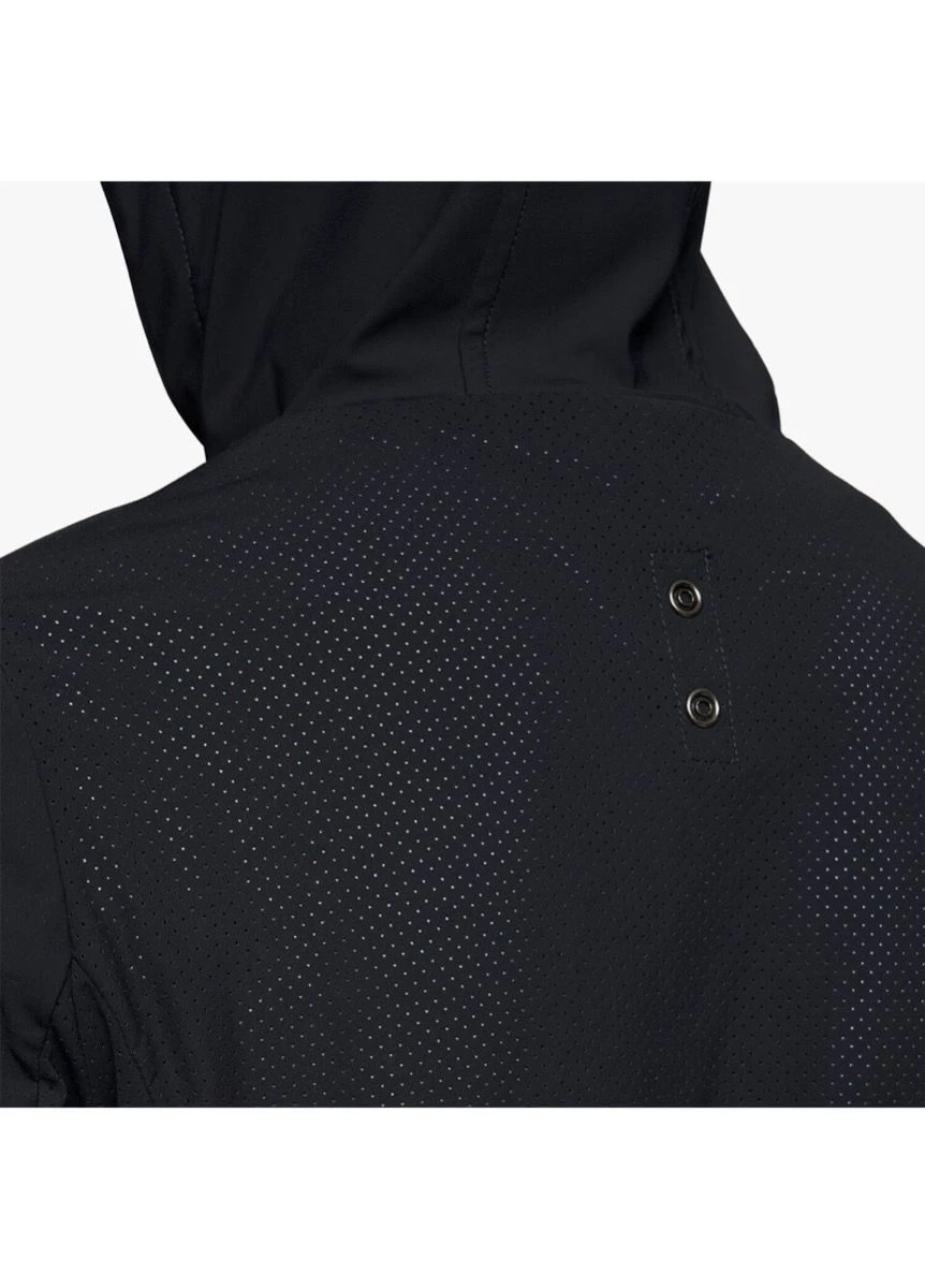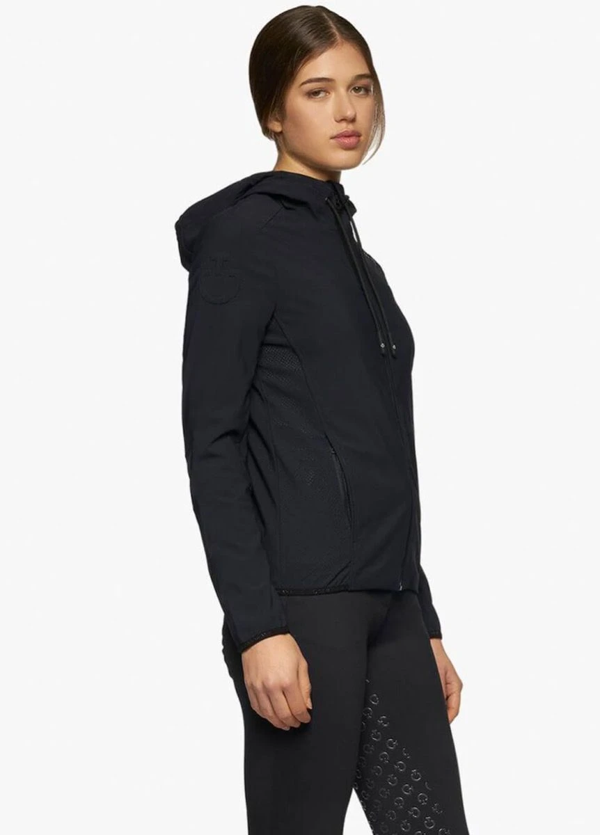 Designed for training sessions in the riding arena, this womenโs softshell jacket is practical as lightweight outerwear during seasonal transitions. In durable performance jersey, itโs defined by an essential cut enriched by breathable mesh panels. The hood and the zip set in heat-activated seam tape protect from the wind when outdoors, while the branded Lycraยฎ trim and the Cavalleria Toscana logo on the sleeve are graphic references to the brand.