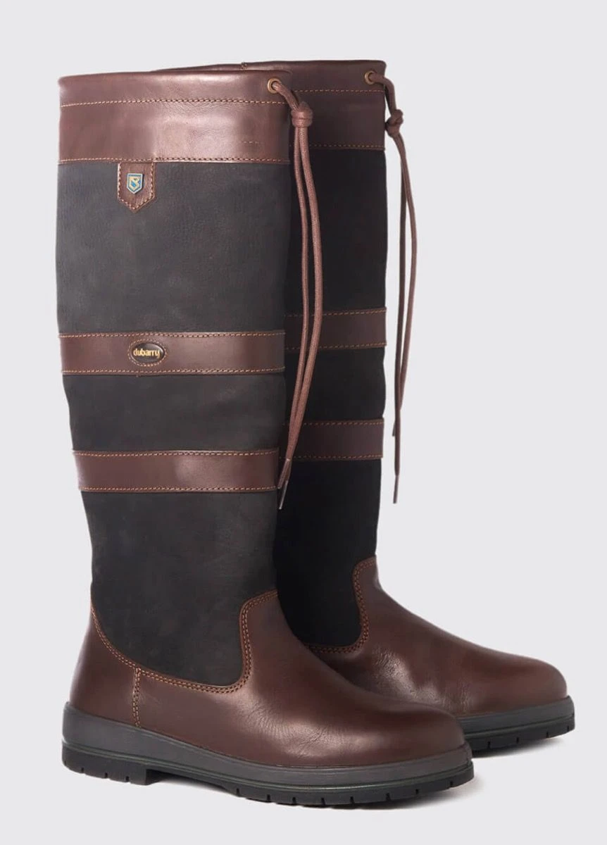 Slim Fitโข narrower calf fitting of the iconic Dubarry Galway leather country boot, a warm, waterproof and breathable staple for country-lovers. Made with DryFast-DrySoftโข leather and lined with GORE-TEX, they have extremely comfortable and shock absorbing soles ideal for crossing rough and wet terrain. Available in contrasting colours and materials, the Galway boot looks great with trousers or a skirt and will see you from muddy country walks, to a smart day at the races, festivals and beyond. Narrower calf fit version of the regular fit galway.
