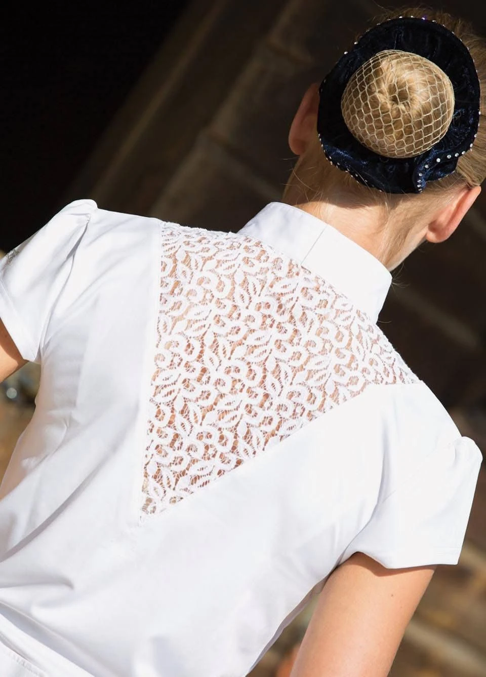 This is a simply stunning technical competition shirt from Equetech, which stands out a mile from the crowd thanks to its elegant and exquisite detailing. The shirt features glamorous diamonte buttons on the front placket, however if you’re not too sure about these they can easily be covered with a stock, as the shirt has a stock collar. With pretty capped sleeves, a shaped bust area which is ever so flattering and a scooped back hem, this lovely top is the perfect piece to add those feminine finishing touches to your competition look. It is machine washable. 95% polyester/5% Lycra