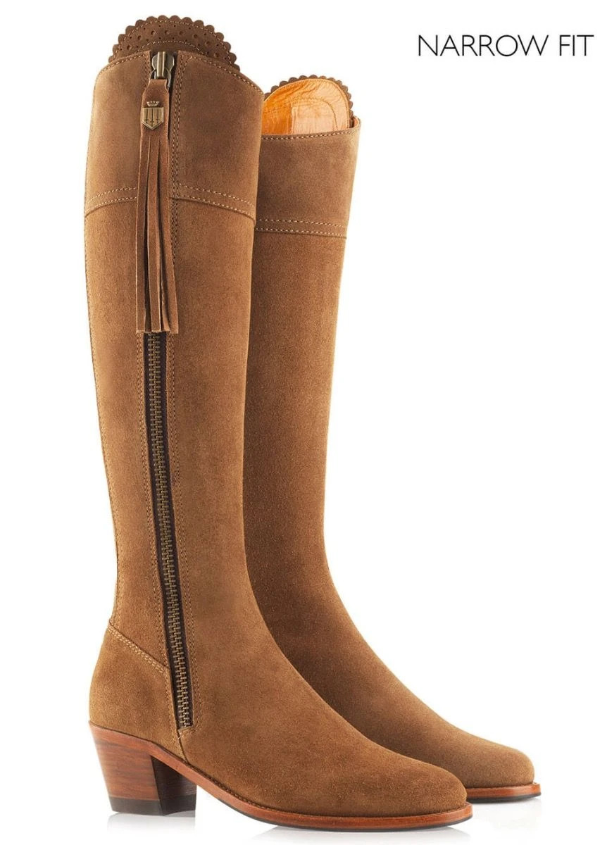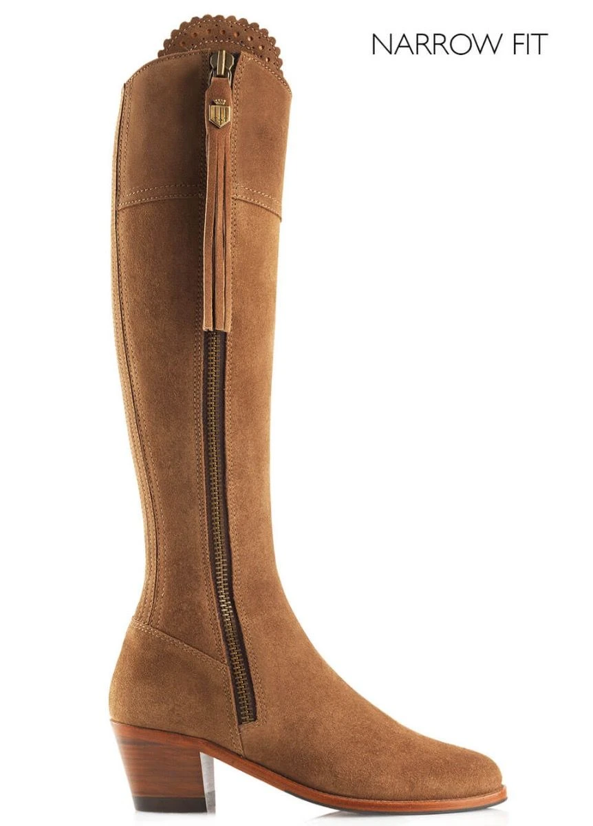The Narrow Fit Heeled Regina features a 5cm elasticated stretch panel to achieve the perfect tailored fit. A memory foam insole compliments a leather/rubber composite sole for improved longevity and ultimate comfort. Dressed up or down, the Heeled Regina is a true Fairfax & Favor signature to suit any occasion. The Narrow fit Heeled Regina is available in suede with or without a 5cm Cuban heel.
