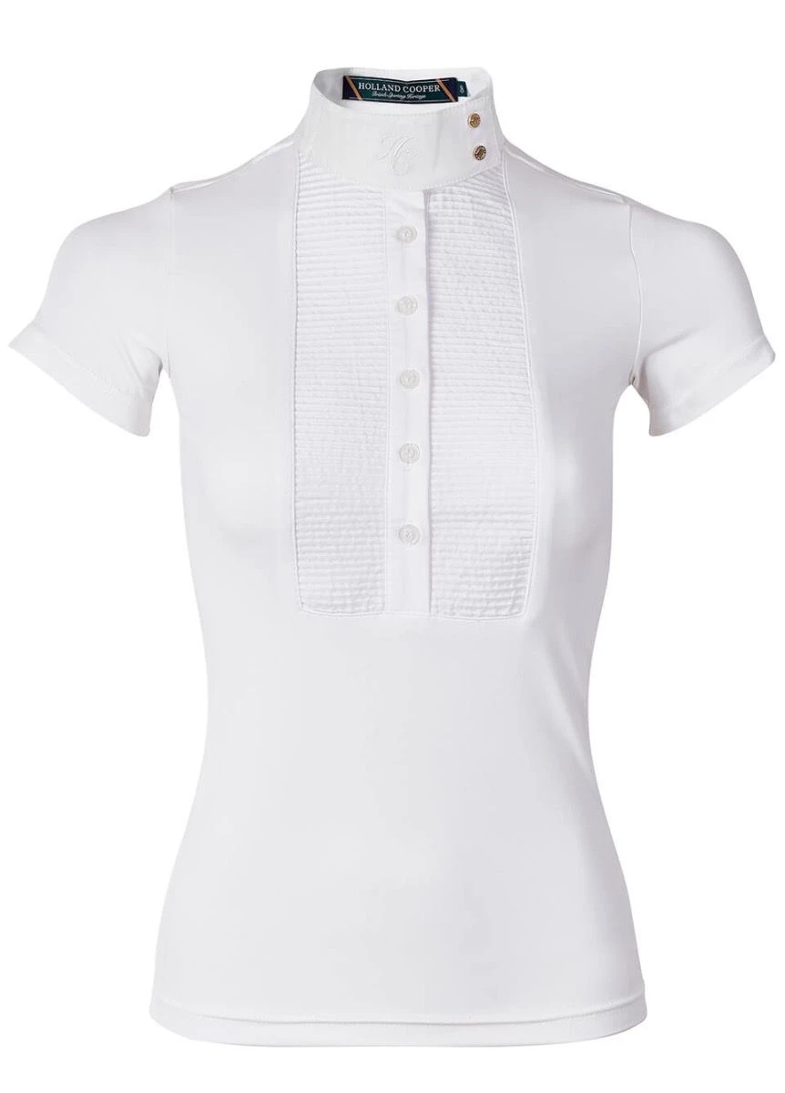 Our Competition Show Shirt is the perfect competition shirt for riders. Designed in a performance material to regulate body temperature and wick moisture away from the body, this shirt is both stylish and practical. With a slight stretch for comfort and detailed with tonal embroidery, pin tuck bib and mandarin style collar, this truly is a luxurious piece for riders.