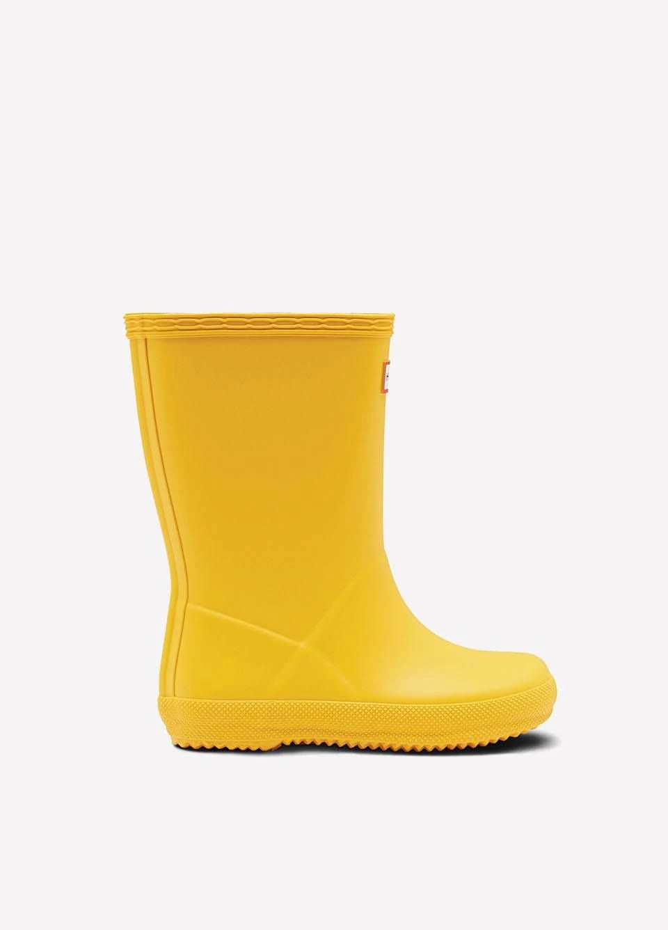 The Hunter Kids First Classic Wellingtons are waterproof and flexible with a wider leg to allow for tuck-ins.