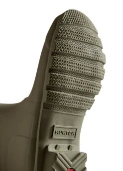 The Hunter Original Short Boot has now been updated with the iconic Hunter tri-colour logo on the backstrap. Perfect for wet-weather conditions, this natural rubber rain boot is a shorter version of the iconic Hunter Original Tall Boot. Each green boot is handcrafted and assembled over three days before being vulcanised for superior protection. The Hunter Original tread pattern and comfortable recycled polyester linings complete the design. Crafted from FSCยฎ-certified natural rubber from forests independently audited to Forest Stewardship Councilยฎ standards.