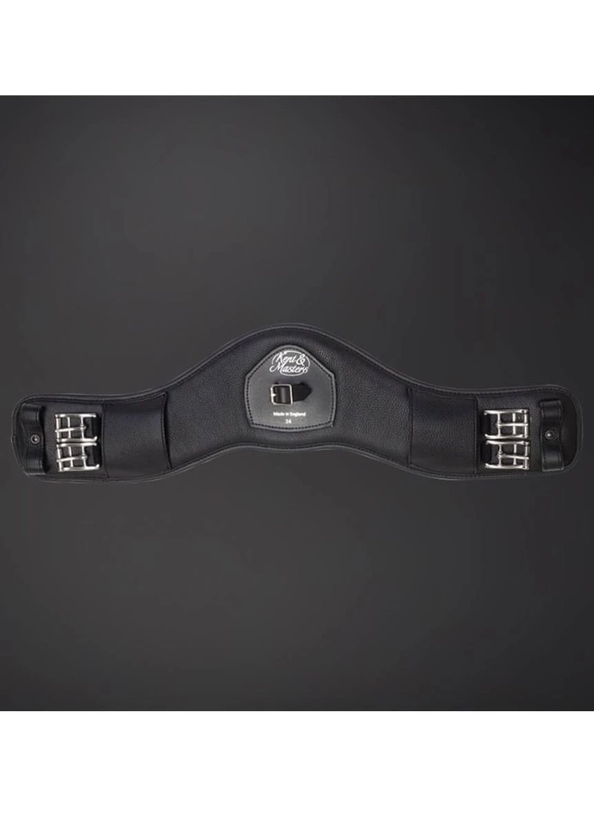 Leather girth for dressage or monoflap saddles. The patented design is contoured to avoid key pressure zones behind the elbows, increasing freedom of movement.