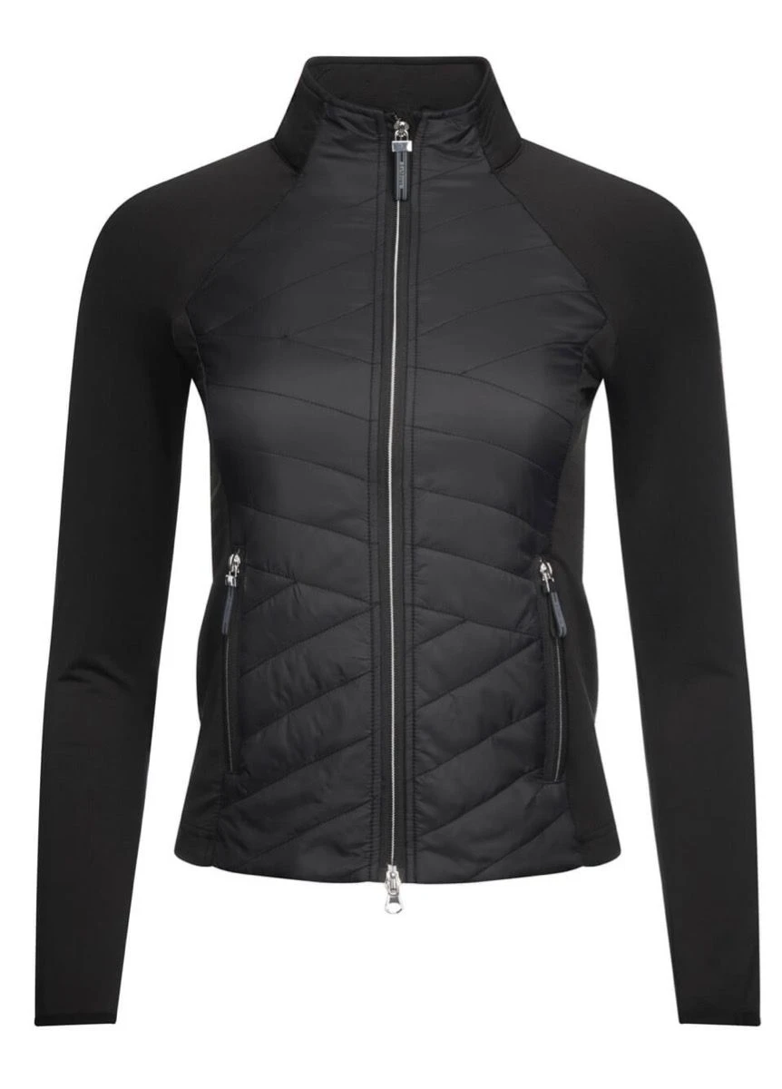 A dynamic quilted front feature panel with stretch side panels in a fitted design make this jacket stylish, comfortable and perfect for peak performance.