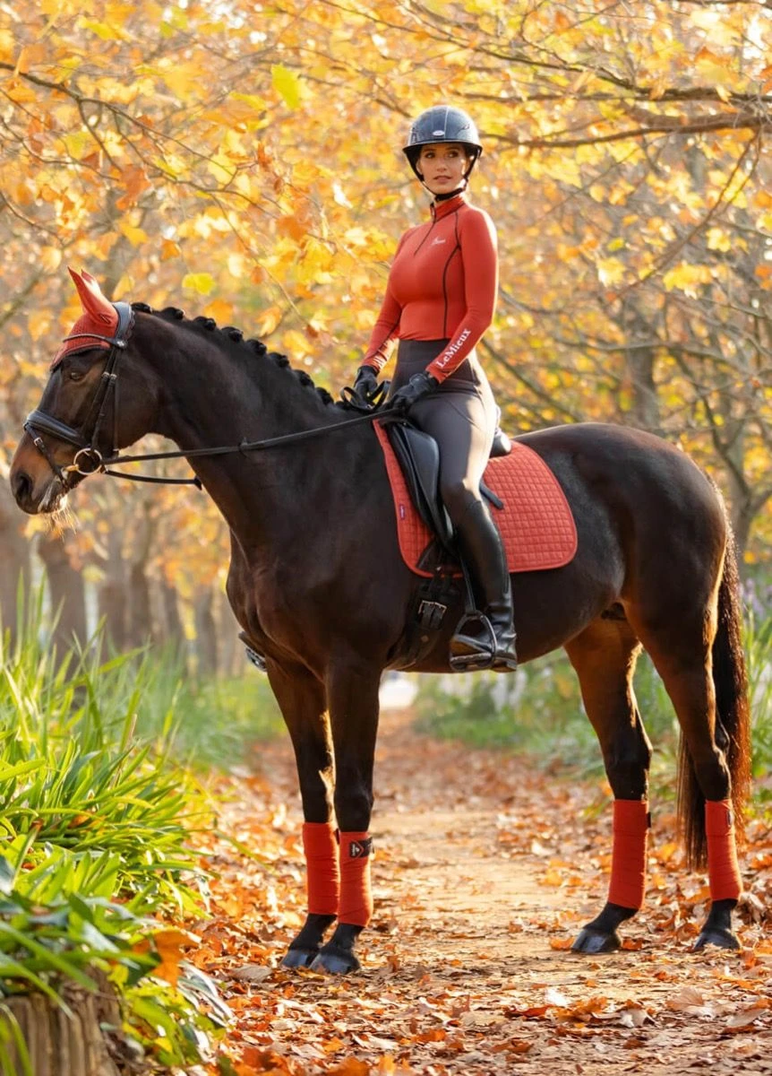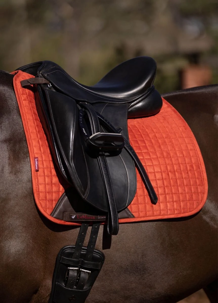 Now with our Super Soft Suede Binding & New PU Leather girth protection area, this beautiful suede Dressage square sets new standards in style & comfort. Now established as the iconic LeMieux look when combined with matching polo bandages and fly hoods there are colours to suit most horses and tastes. Designed to fit a wide range of dressage saddles with its high wither and elasticated D-Ring tabs .