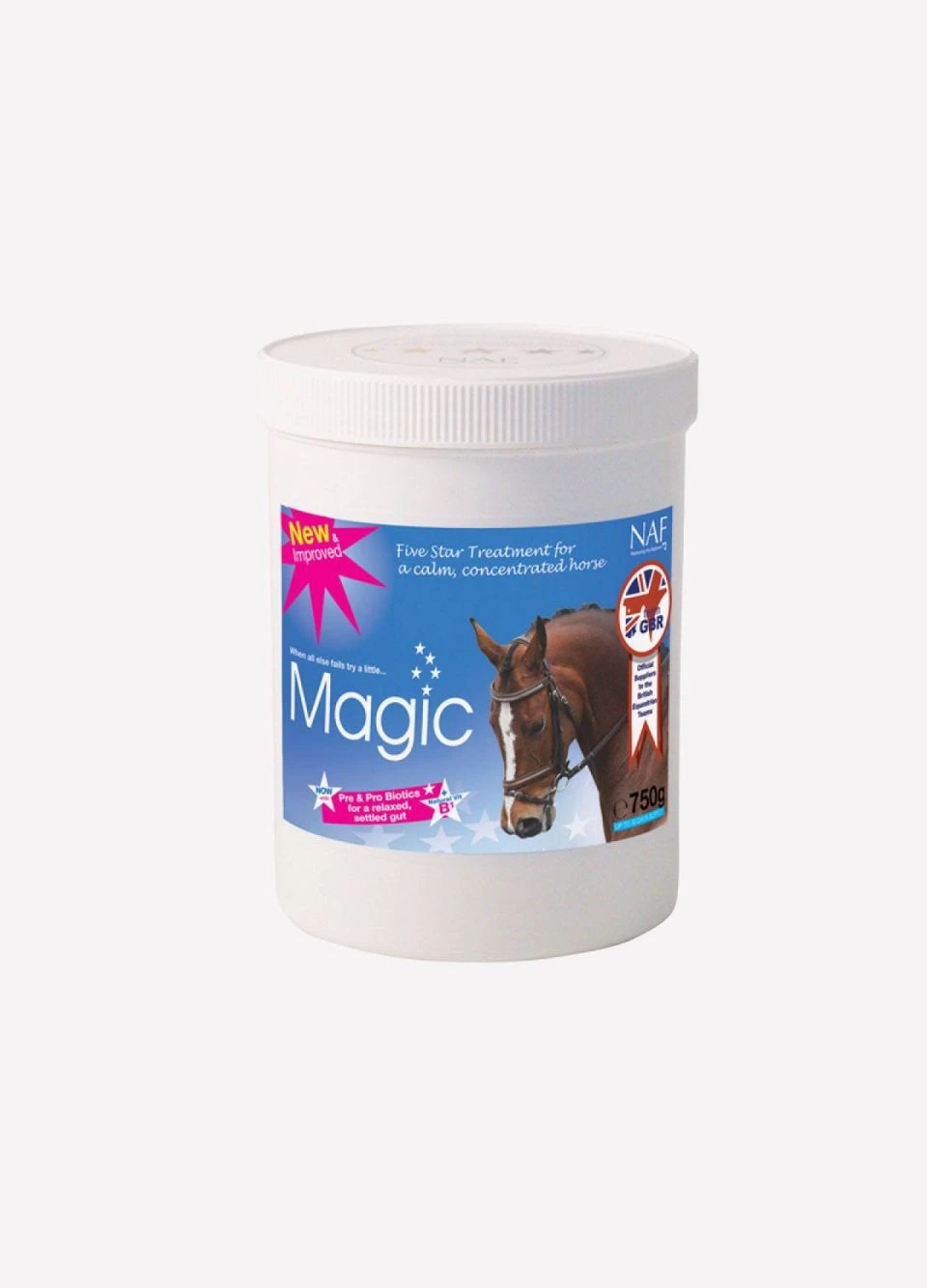 It’s often unknown that a grazing deficiency in your horses diet can cause a lack of magnesium, along with regular travelling and competing, so horses who are out less and doing more are already prone to be more excitable! This unique magnesium calmer from NAF uses completely natural ingredients to target your horses over-excitement in the most effective way possible. It has always been incredibly popular amongst our customers, as it doesn’t just encourage your horse to have a calmer outlook, it also supports his overall health and wellbeing! Magnesium is a nutrient that is well known for it’s relaxing properties, however in Liquid Magic, the magnesium is blended with natural herbs, so that the product initally relaxes muscle tension, and then gets to work incresing confidence and focus in your horse, helping him to take on his tasks much more calmly and positively! The magnesium in this supplement doesn’t go against any FEI rules, and is safe for use in all horses!