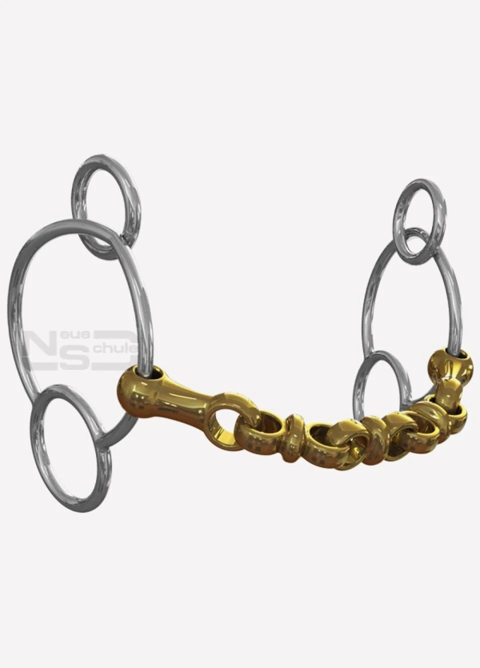 If your horse tends to be a little overexcited, and has a habit of simply setting against your hand and going, then you need a bit that will give you back some control and encourage your horse to listen a bit more attentively. This universal bit with a Waterford mouthpiece is ideal for putting some emphasis on your rein aids, and giving your horse something to listen to! This also means you can give a wider variety of rein aids and get a successful reponse, meaning self carriage and a good outline are much more achievable.ย In addition, the bit has aย clever lip shelf on the mouthpiece, which prevents any painful bit rubs, that can cause more of a problem than you may think.ย Always try out a new bit in the prescence of an experienced friend or trainer as you cannot always factor for how a horse will react.