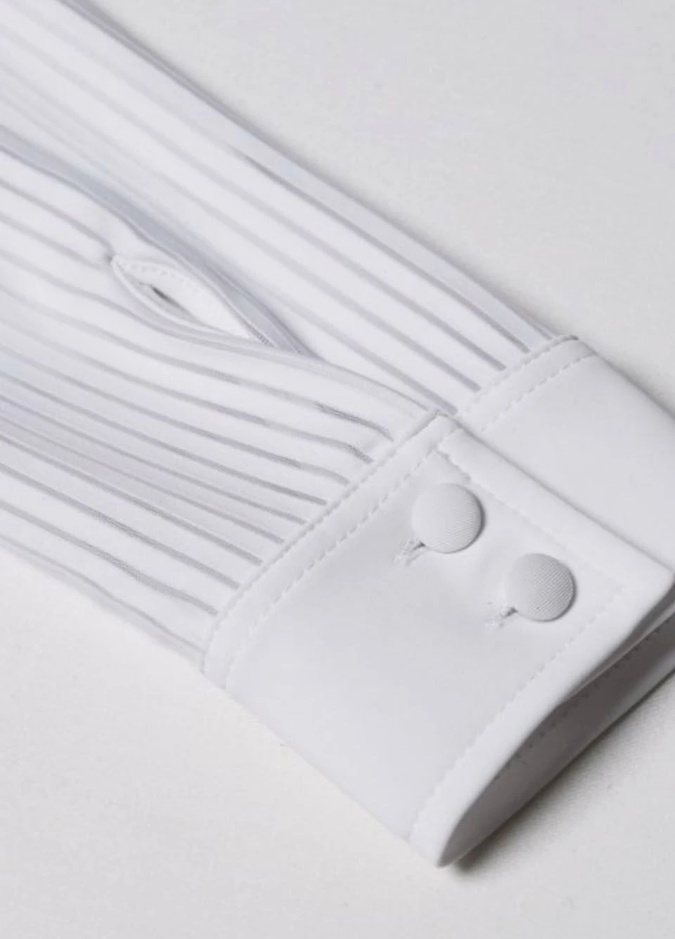The tailored fit of the Fuastine competition shirt provides an excellent positioning when active for an optimal comfort. The collar closes with hidden small snaps and zipper and the cuffs close withย small buttons.