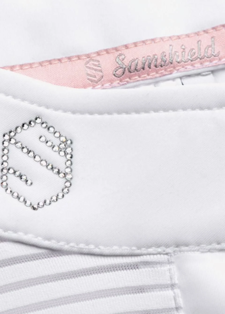Theย Samshield Ladies Faustine long sleeved competition shirt further featuresย transparence fabric on the sleeves and the collar, and a Samshield blazon made with Swarovskiยฎ crystals ensure feminity, elegance and distinctiveness.
