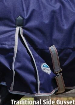 This Weatherbeeta Lite turnout Rug further features a standard tail flap and traditional side gussets for natural movement.